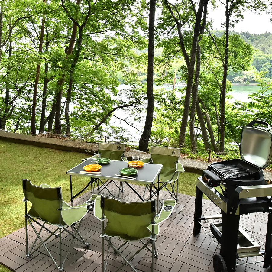湖を望むBBQスペース。